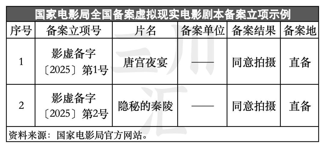 在此背景下,虚拟现实技术在影视、文旅等领域的应用加速落地。2025年3月21日,国家电影局发布《关于促进虚拟现实电影有序发展的通知》,又 发布《虚拟现实影片送审须知、备案须知》 。通 过政策规范和技术革新 , 推动虚拟现实电影从实验性项目转向规模化产业,标志着这一新形态电影正式纳入国家电影管理体系。