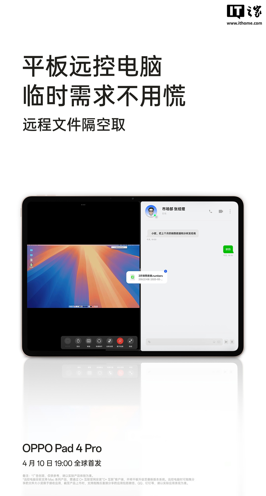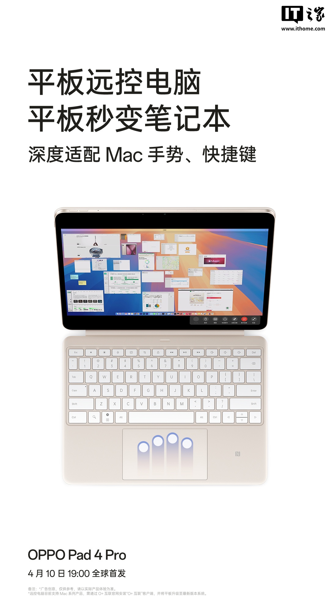 据介绍,OPPO Pad 4 Pro 平板支持远控电脑功能,可提供“远程文件隔空取”、“电脑软件随时用”等能力。另外,平板配套键盘深度适配 Mac 手势、快捷键。