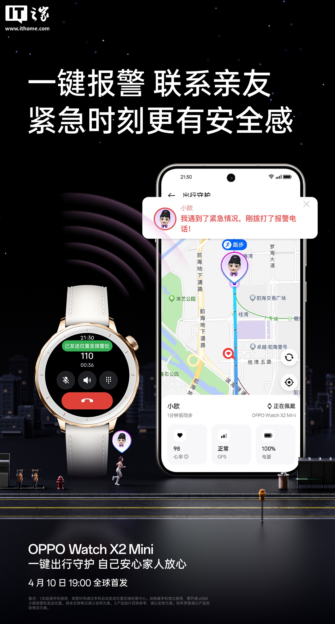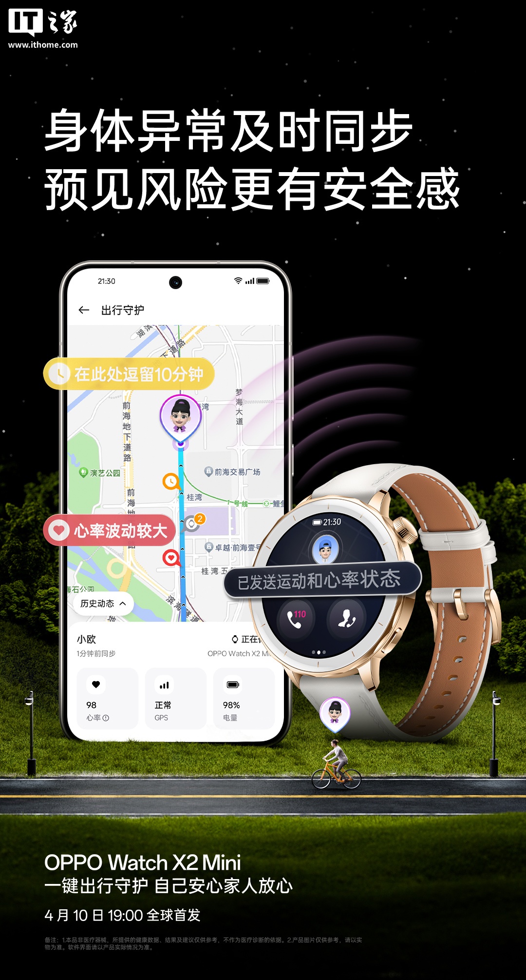 据 OPPO 官方最新预热,OPPO Watch X2 Mini 智能手表支持实时定位分享、身体异常及时同步、一键报警联系亲友等功能。