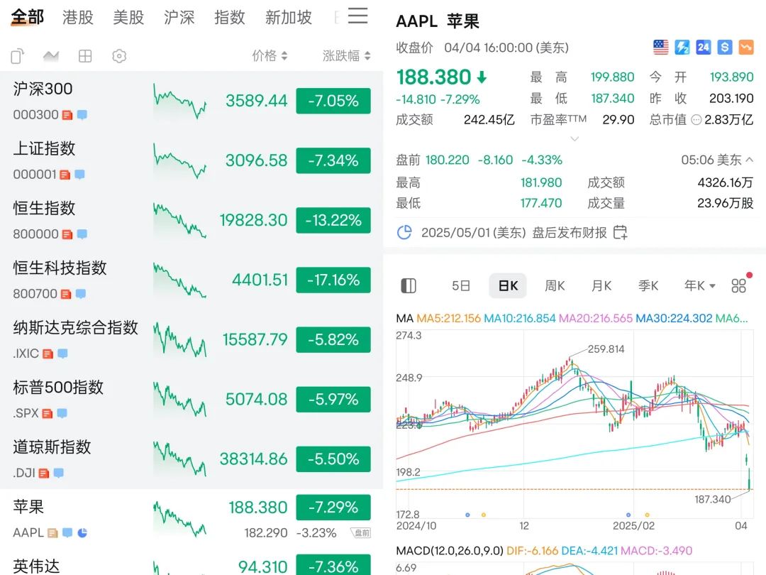 4 月 7 日收盘,沪指下跌7.34%,深指跌9.66%,创业板指跌12.5%。