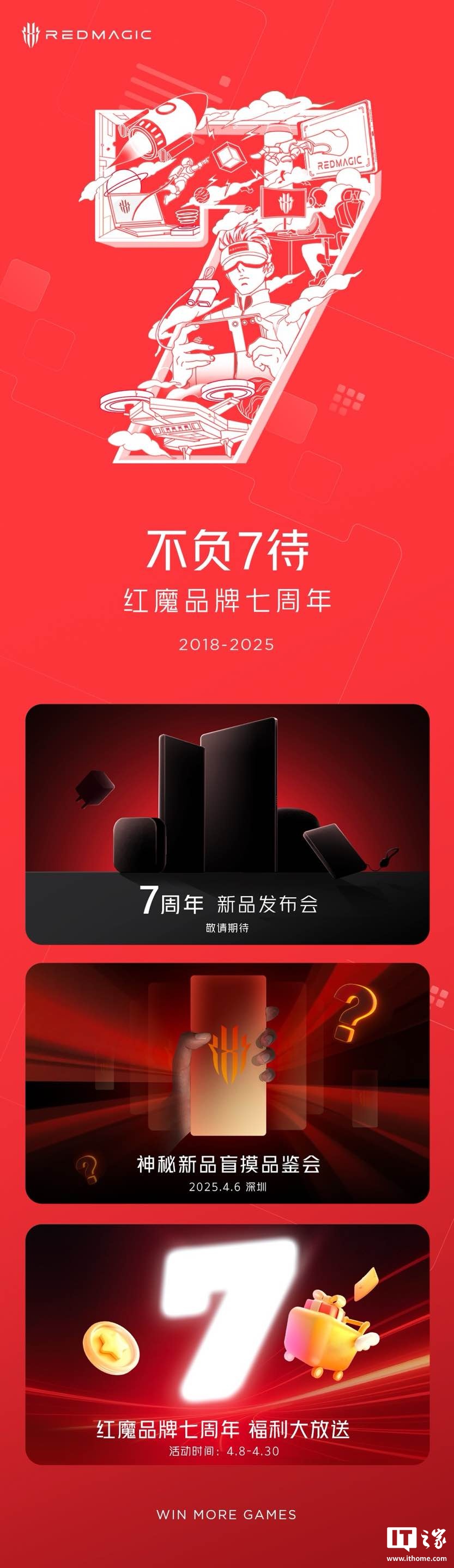 据IT之家此前报道,中兴通讯终端事业部总裁、努比亚技术有限公司总裁倪飞本月发文宣布,游戏手机品牌红魔迎来 7 周年,连续稳居全球电竞手机销量榜首,2024 年业绩同比增幅达 130%。