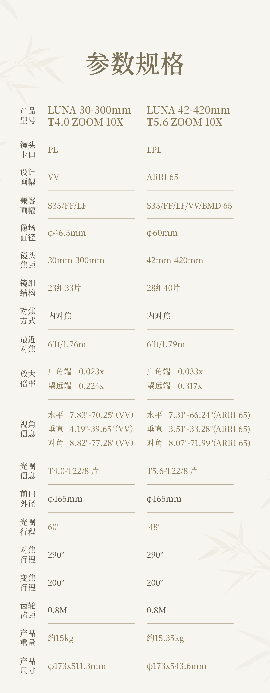 后者则是全球首款覆盖 65mm 大画幅的 10 倍变焦电影镜头,最远端 420mm 是唯卓仕焦段至长之作,可实现从 42mm 经典视角至 420mm 超长焦的视觉折叠,搭载面向未来的 LPL 卡口(LargePositiveLock),与 ARRIALEXA65 等摄影机原生契合。
