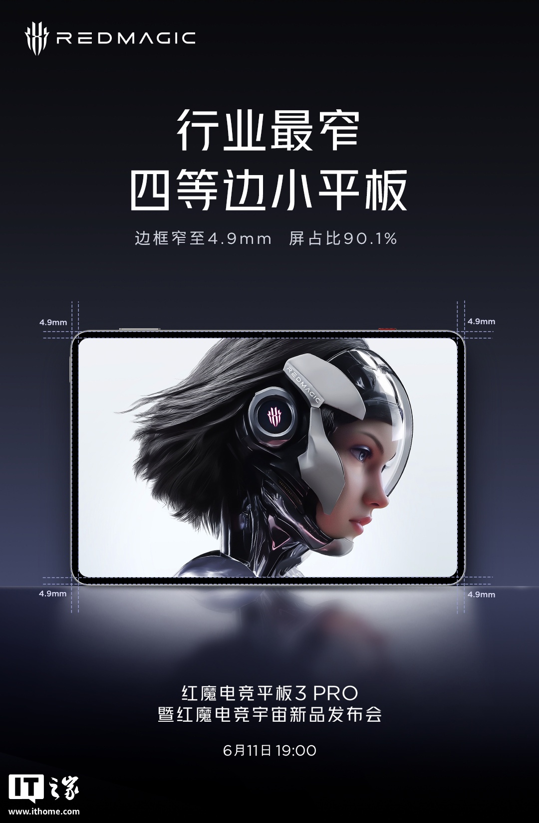 IT之家 6 月 4 日消息,红魔游戏手机官方昨日宣布,红魔电竞平板 3 Pro 暨红魔电竞宇宙新品发布会定档 6 月 11 日 19:00。