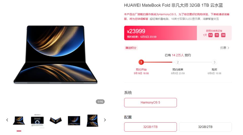 MateBook Fold 非凡大师预约人数破14万