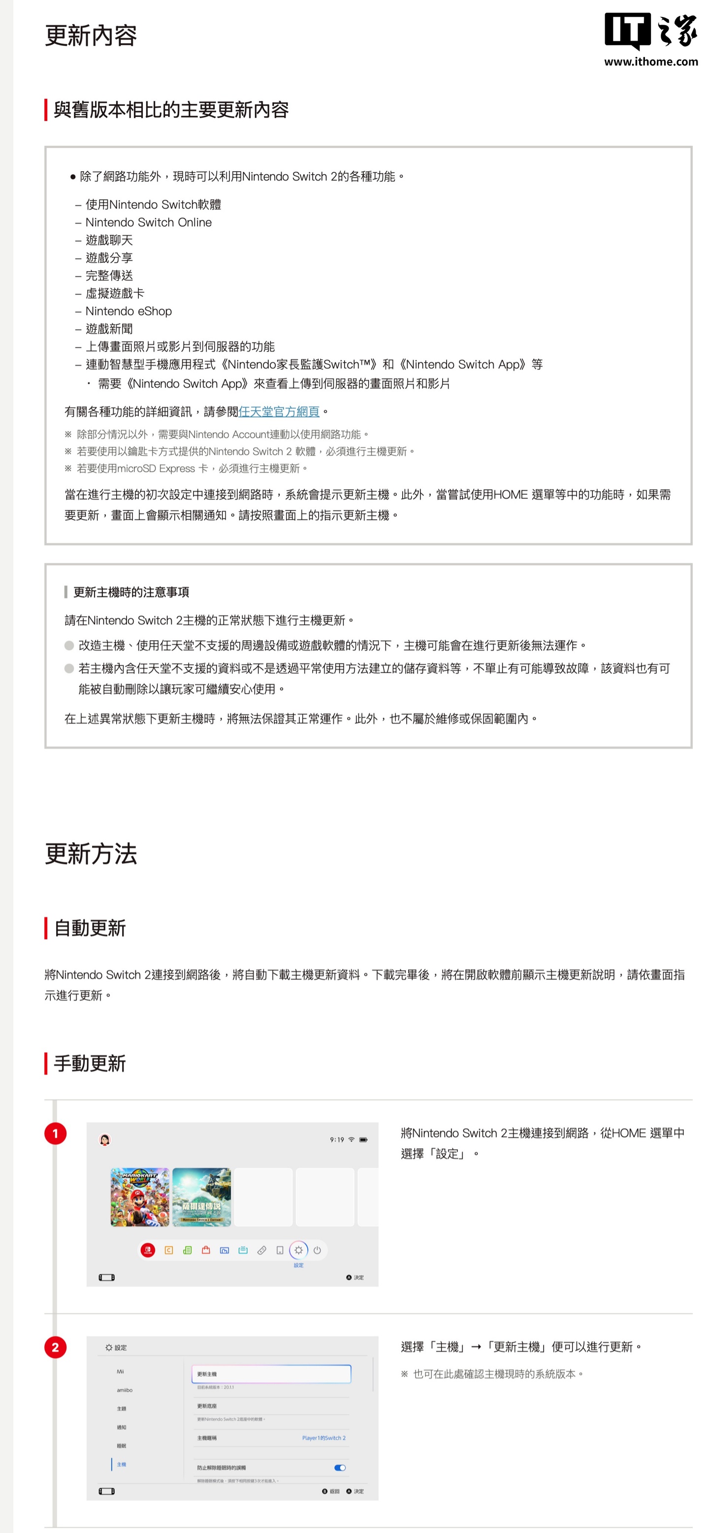 IT之家 6 月 4 日消息,任天堂 Switch 2 游戏机将于明日发售,首日更新补丁已开始推送,启用网络功能。