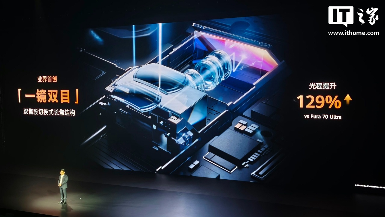 另外,华为 Pura 80 Ultra 新机长焦再突破,业界首创「一镜双目」双焦段切换式长焦结构,对比 Pura 70 Ultra 手机,光程提升 129%。
