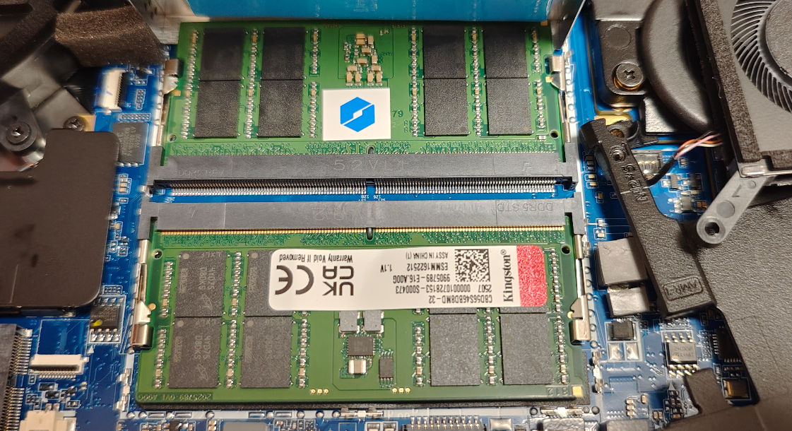 内存表面也有带散热开孔的金属马甲,下面是两根金士顿的 5600MHz DDR5 双通道内存。