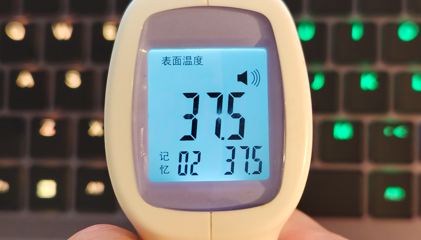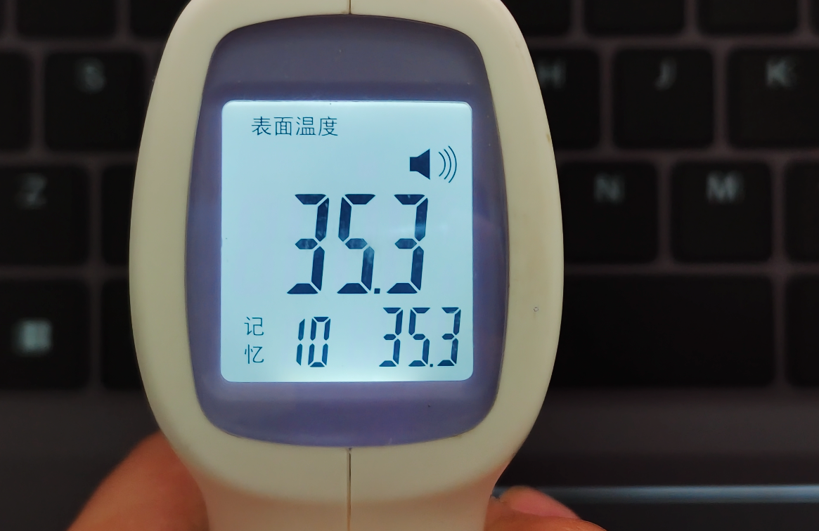 再看温度,键盘区域上方降到了 37.6℃,键盘区域中间温度则只有大约 35.3℃,使用时只是微微发热了。