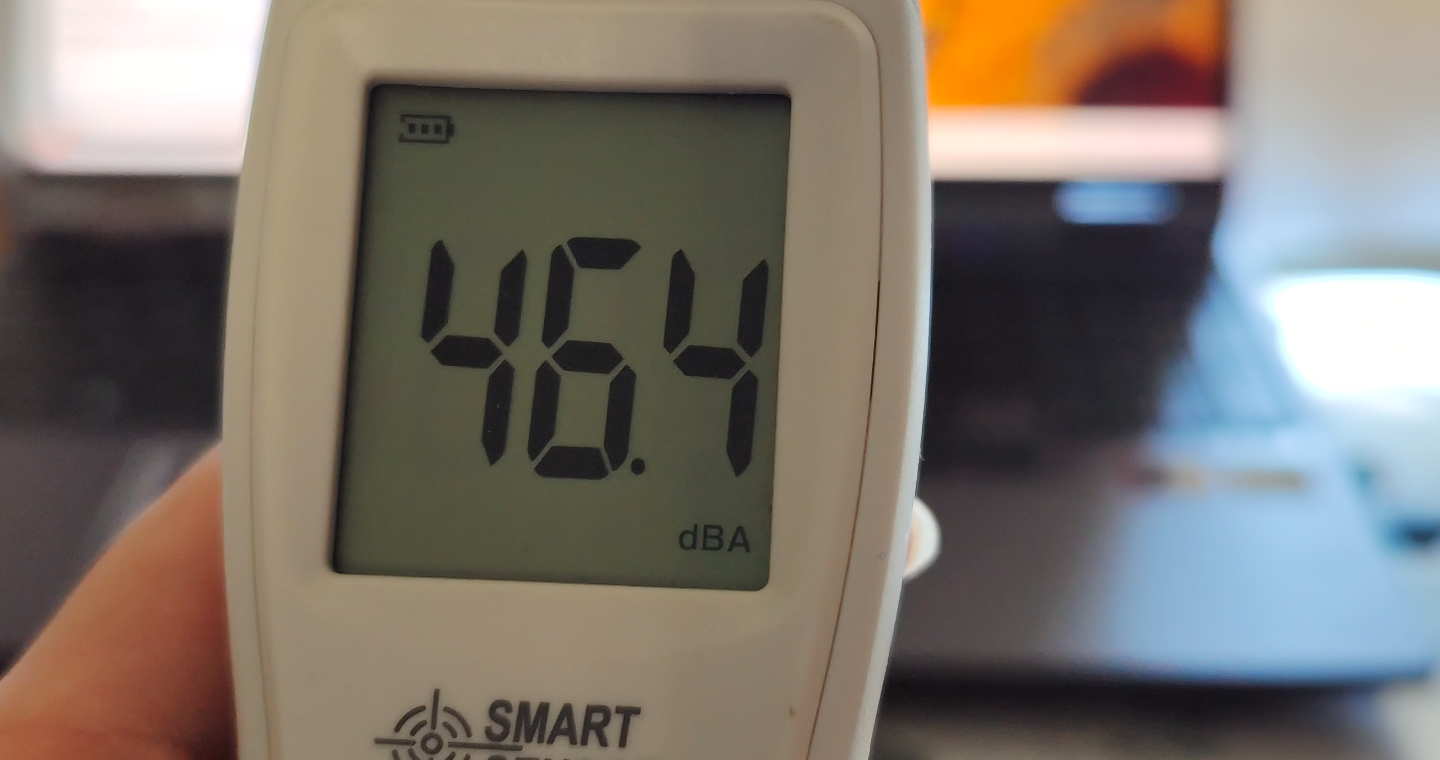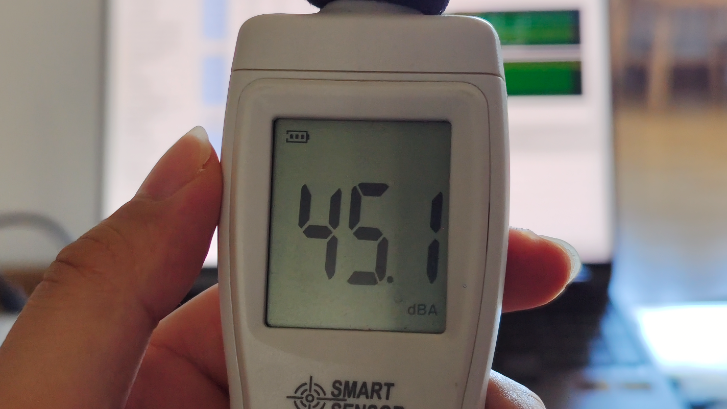 此时测得噪音大约在 45.1dBA,明显比不接水冷的声音要小。