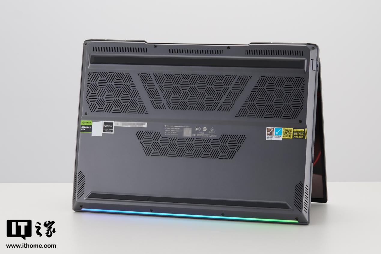 全新苍龙 16 Ultra 在笔记本前端的下方设有 RGB 炫彩灯带。54 颗灯珠组成,大大增强玩游戏时的电竞氛围感。