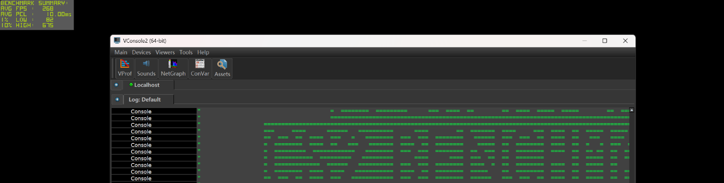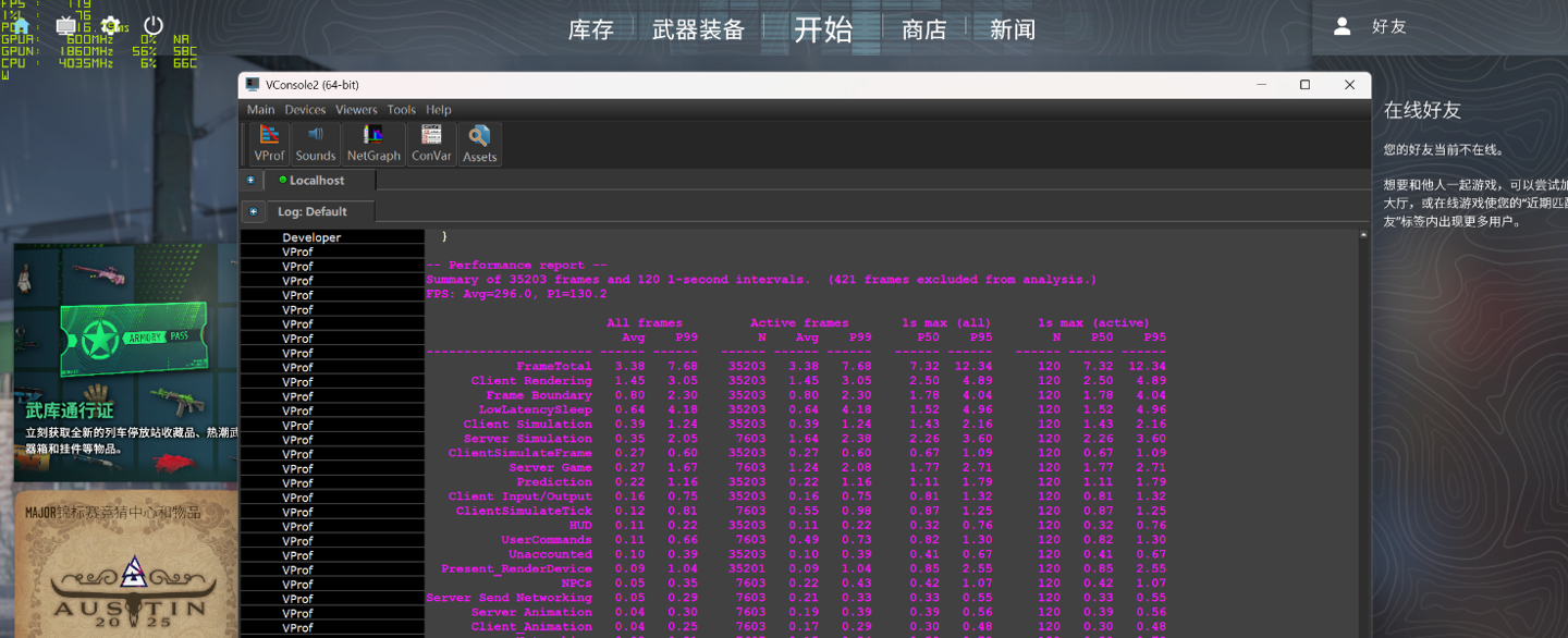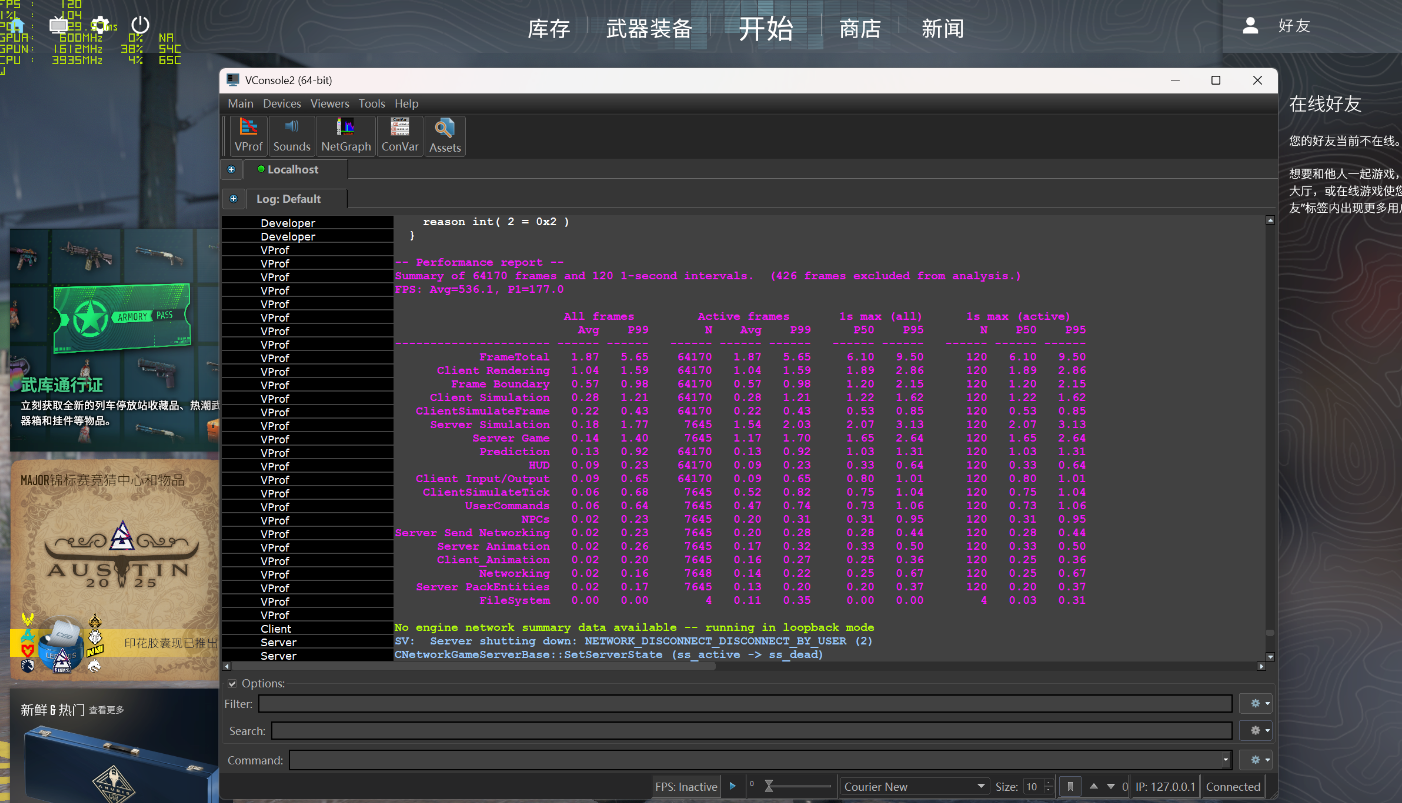 另一款在线竞技游戏《CS2》,在 2.5K 低画质下,运行自带的 BenchMark,得到平均帧率为 536.1 FPS,同时使用 FrameView 软件测得过程中的 1% Low 帧为 143 帧。
