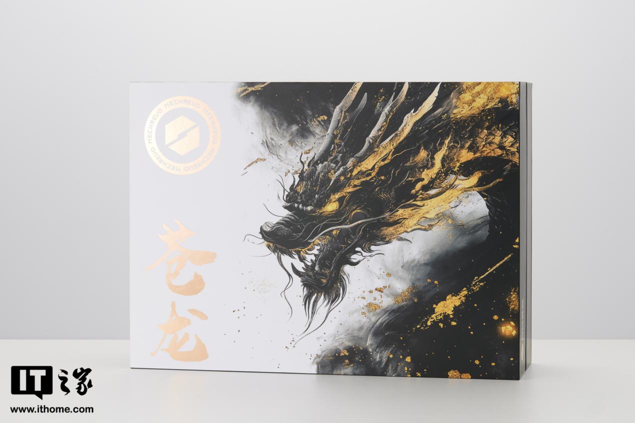 我们首先来看一下机械革命苍龙 16 Ultra 的外观。相信很多人在拿到产品后首先会被它酷炫的包装吸引,一条气势恢宏的黑金巨龙印在表面,搭配金色的毛笔大字“苍龙”,让整个包装看起来充满中国风的苍劲雄浑。