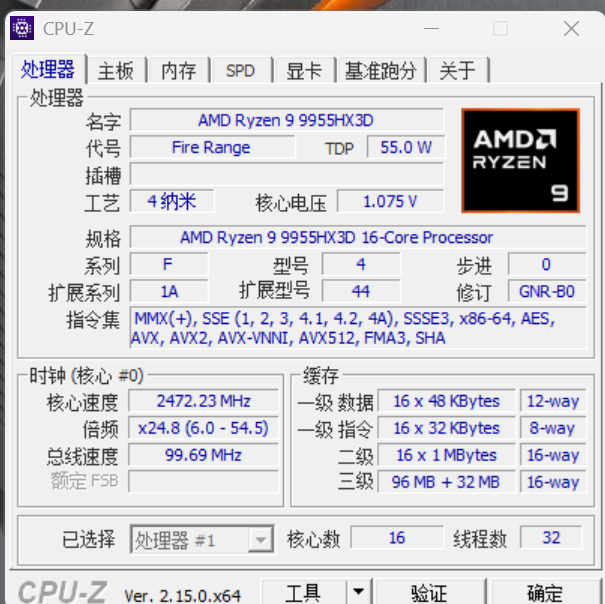 机械革命苍龙 16 Ultra 搭载 AMD 锐龙 9 9955HX3D 处理器,该处理器基于创新的 Zen 5 架构,配备 16 超大核 32 线程,加速时钟频率为 5.4 GHz,144MB (L2+L3)高速缓存,TDP 55W,在苍龙 16 Ultra 上支持超过 120W 性能释放,得益于 AMD 第二代 3D V-Cache 技术的加持,游戏性能大幅提升。