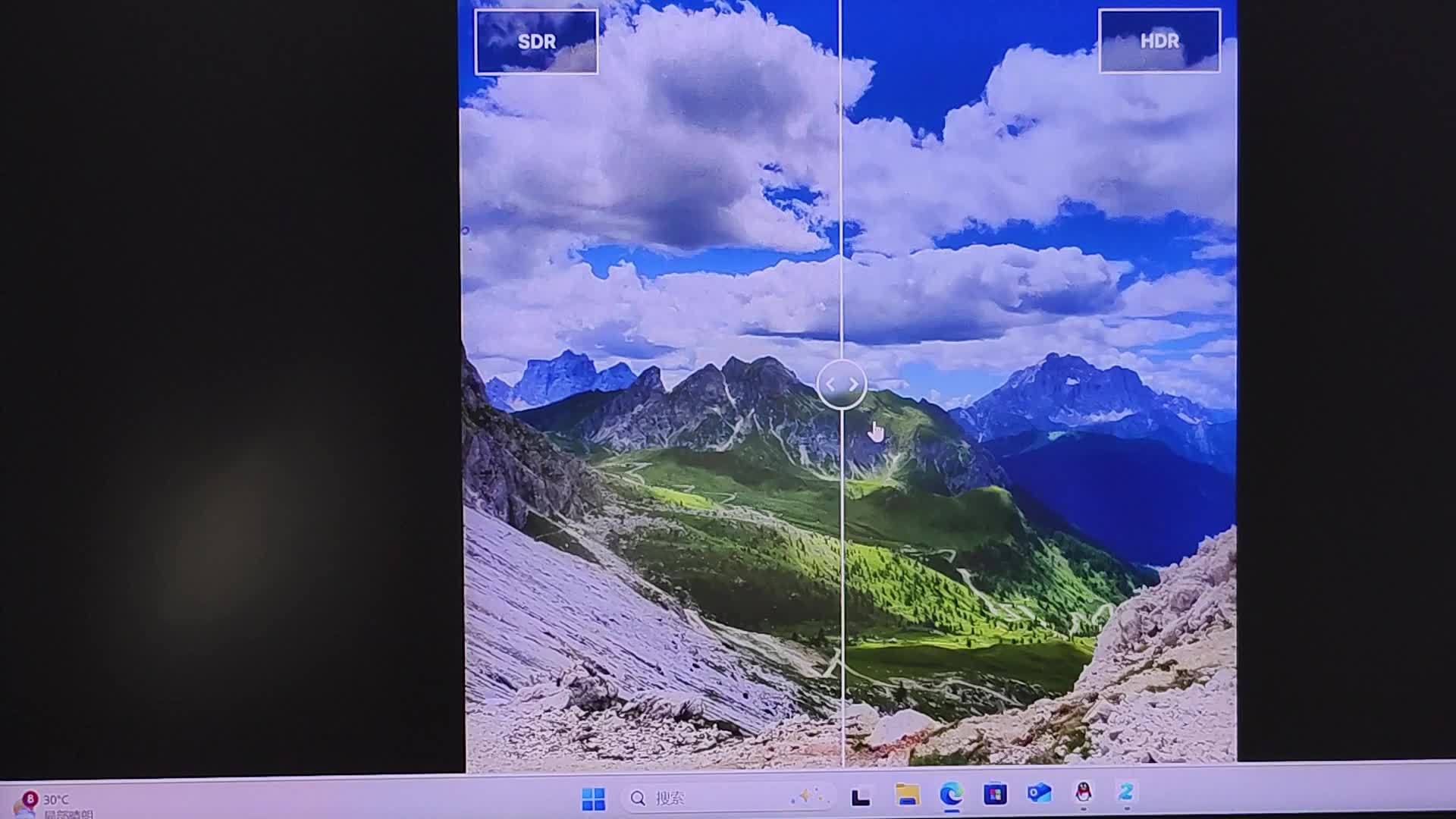 HDR 显示方面,还是通过下面的同一张图片来切换 HDR 显示和非 HDR 显示的效果,普通不支持 HDR 显示的屏幕,当滑轨拖动到 HDR 显示效果时,虽然和标准 SDR 显示的效果不同,但该亮的云层不亮,该暗的地方灰蒙蒙,属于 HDR 照片的异常显示。但是使用苍龙 16 Ultra 这块屏幕来观看,HDR 显示效果下,云层中高亮的地方非常明亮,而画面中的暗部又不失细节,整个图片会变得非常逼真,接近人肉眼所见的观感,这说明苍龙 16 Ultra 的屏幕在 HDR 显示方面确实非常出色。