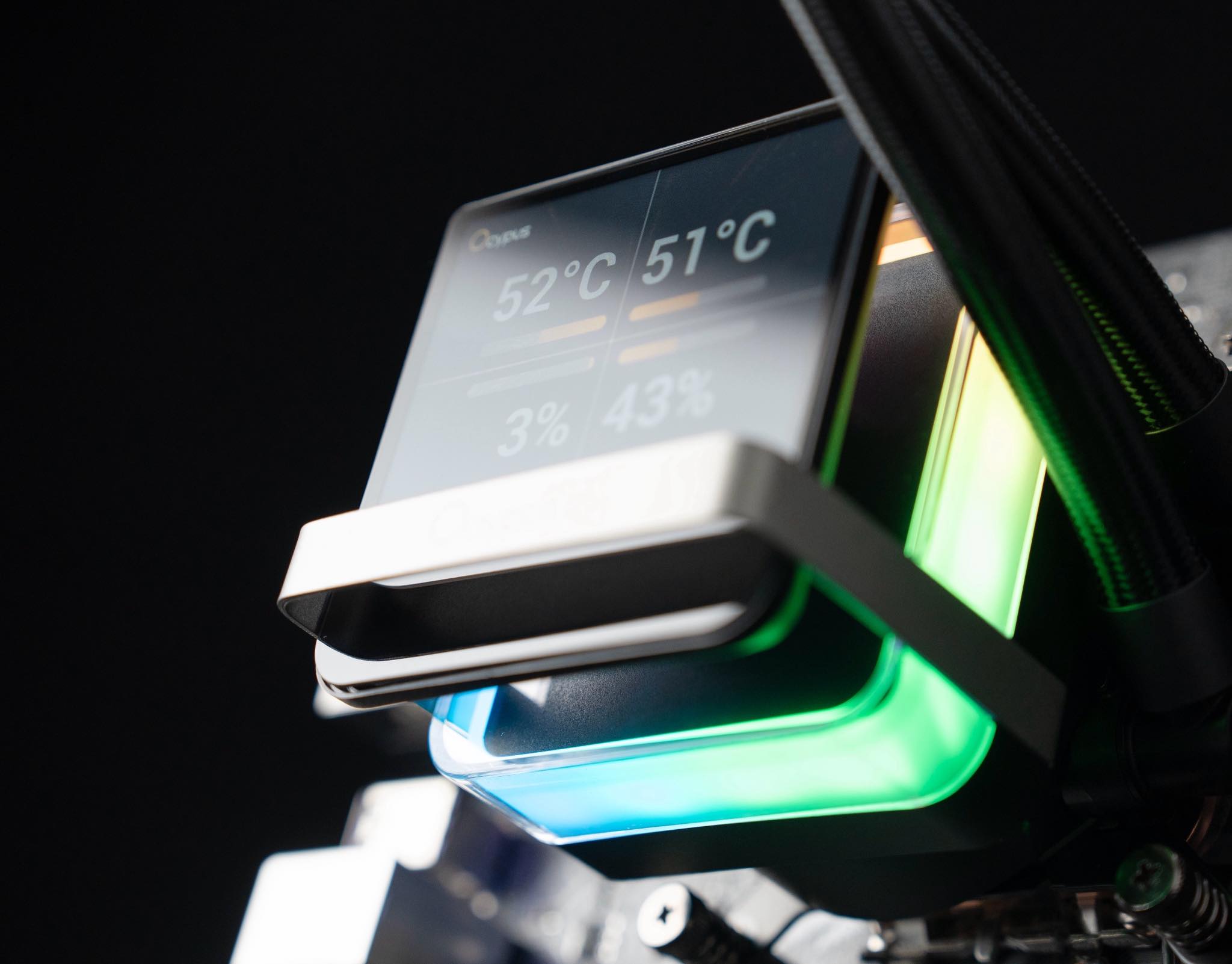 Sigma 系列的 Pro 版本则是配备了 3.5 英寸的 4.5 英寸 640×480 方形显示面板,其四周的空隙和下方的环绕式 ARGB 灯带塑造出独特的类“悬浮”视觉效果。