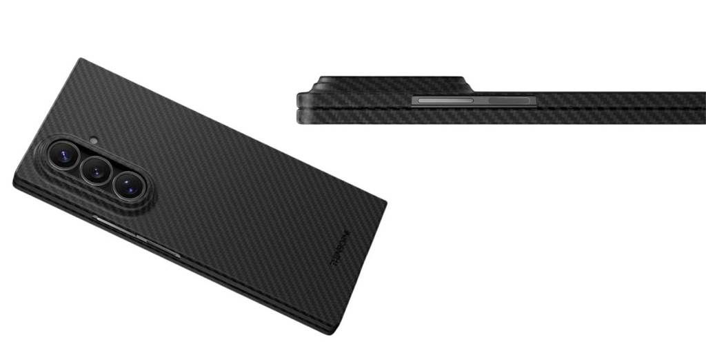 这张渲染图展示了三星 Galaxy Z Fold7 佩戴手机壳后的效果,从横切面角度来看,可以看到相机凸起的高度,基本上和手机单侧的厚度相同。此外三星为减少视觉上的厚度感觉,还为相机做了梯度设计。