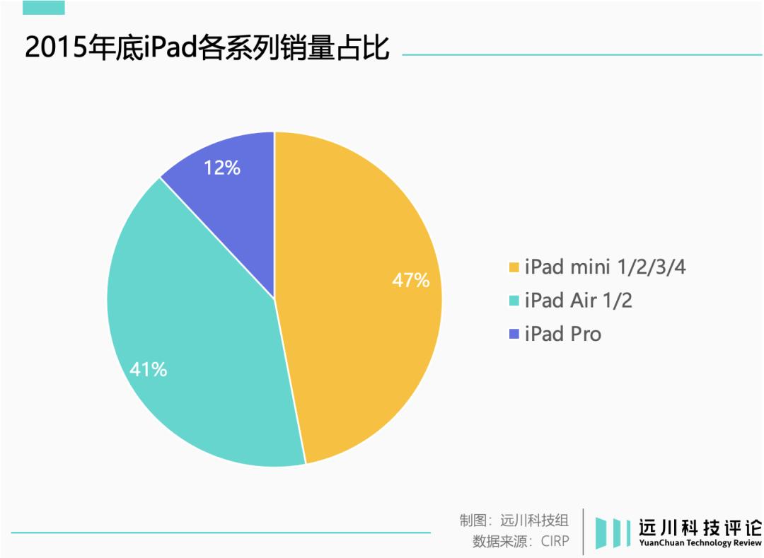 按照市场研究机构CIRP的测算[3],在iPad mini停更前的一季度——即2015年Q4,大部分新增的iPad消费都被iPad mini系列吞噬,导致iPad mini的销售占比从32%增加到了47%,定价更高的iPad Air反而下滑。