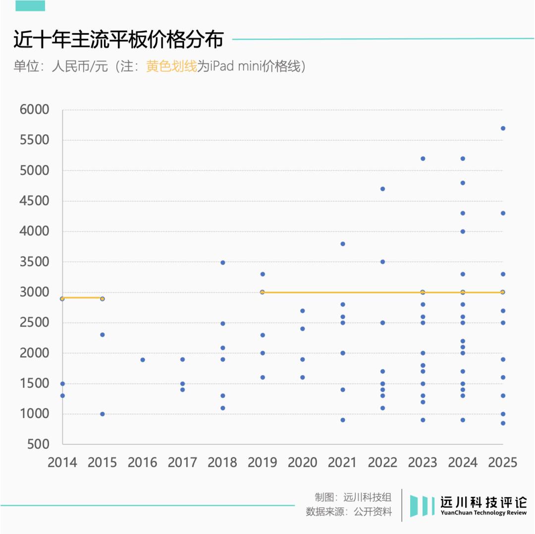 作为平板电脑市场的霸主,iPad定价锚的身份没有变化。但随着iPad/iPad mini存在感越来越低,安卓阵营的定价天花板上移了3000-5000元,平板电脑一下成为了利润非常可观的生意。