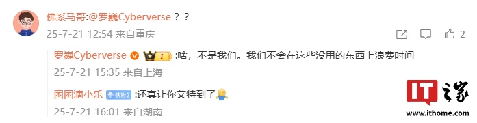 据IT之家昨日报道,有消息称某厂一镜双焦段的连续光变和 2 亿多镜方案都有技术储备和预研方案,并表示“希望早日走出实验室,干翻 XX”。针对该爆料,不少网友猜测厂商为荣耀。但该说法随后遭到了罗巍的否认:“不是我们。我们不会在这些没用的东西上浪费时间。”
