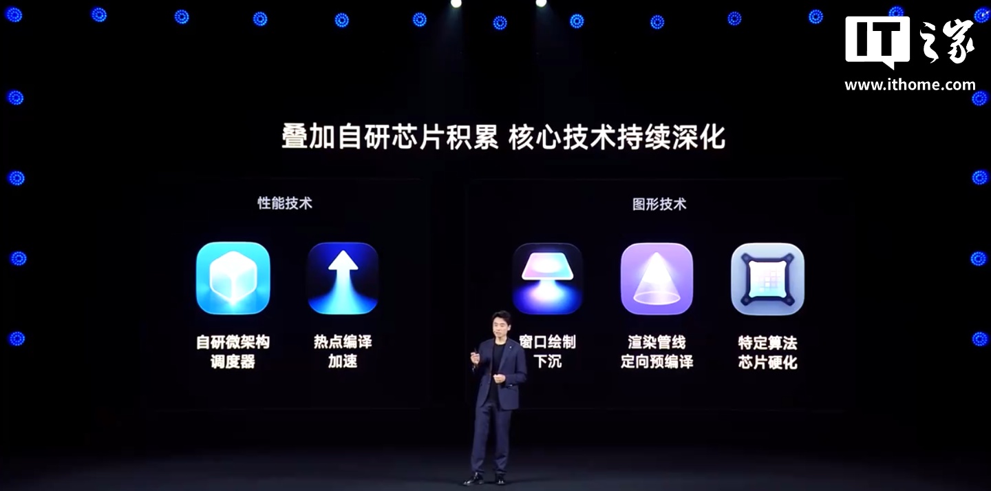 另外,澎湃 OS 3 叠加自研芯片,累计核心技术持续进,聚焦调度领域,深入编译领域,针对热点函数做编译优化,窗口动画绘制下沉至系统层,显著提升动画稳定性,核心技术持续优化带来更优异重载场景优于友商。