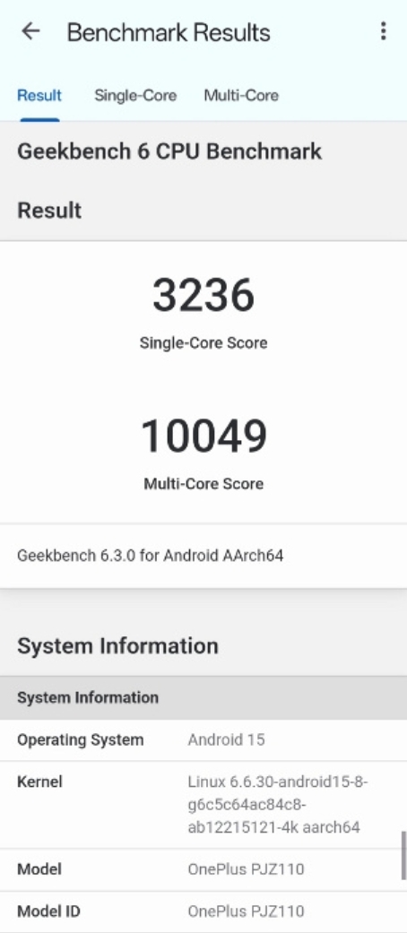 此次被曝光的是一加13的Geekbench 6跑分,采用的是骁龙8 Gen4芯片,数据库显示单核得分为3236,多核得分则高达10049。而在iPhone 16系列正式发布后,A18 Pro的Geekbench 6跑分也得到更新,最新的成绩为单核得分3409,多核得分8492。