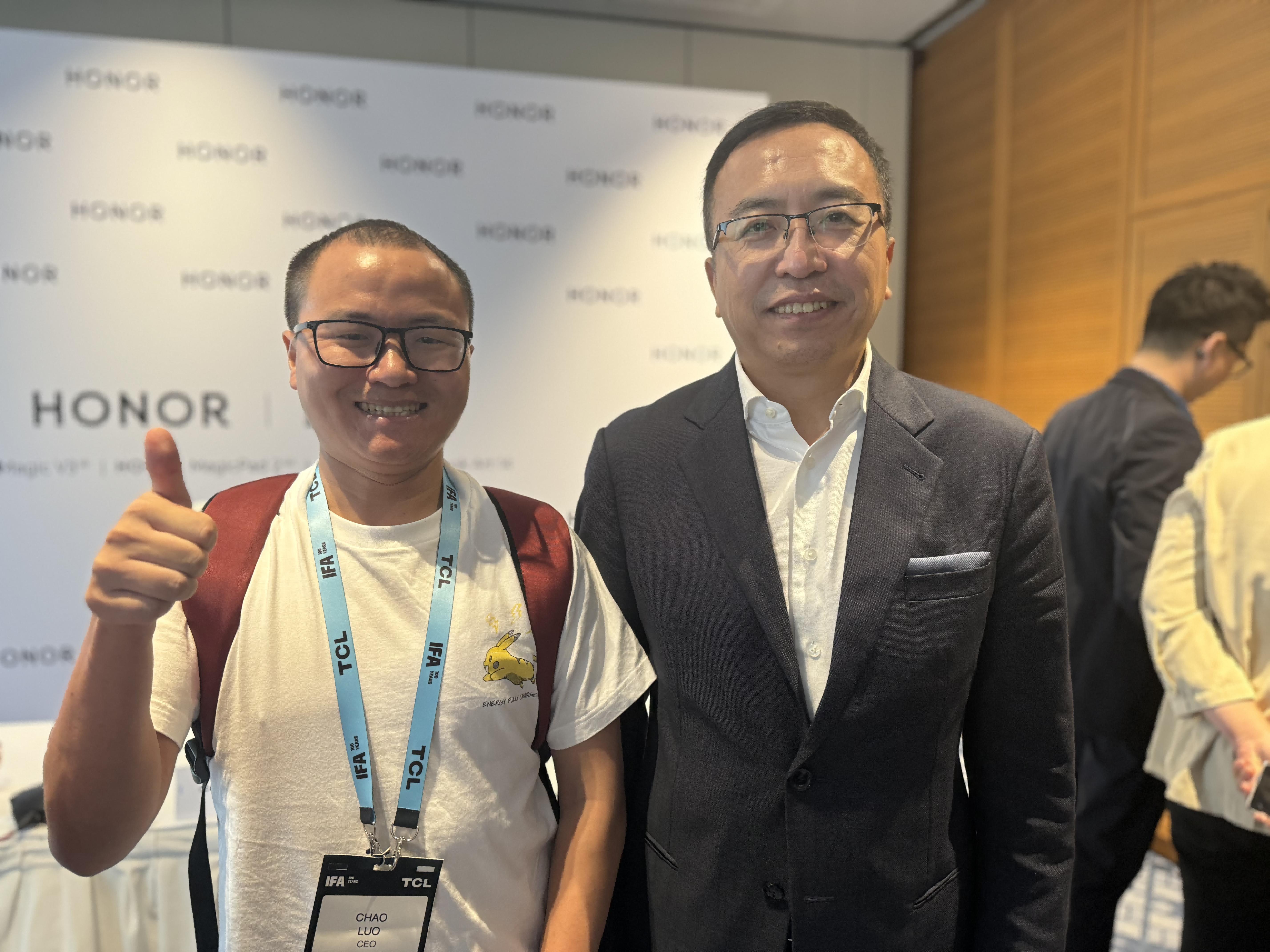 第二家有可能推出三折叠手机的厂商,则是上文提到过的荣耀。同样是在IFA 2024大会上,赵明向雷科技及其他媒体透露了一些三折叠手机的信息,并表示荣耀所有手机设计都是提前一年就定好的,不存在抄袭华为的可能。