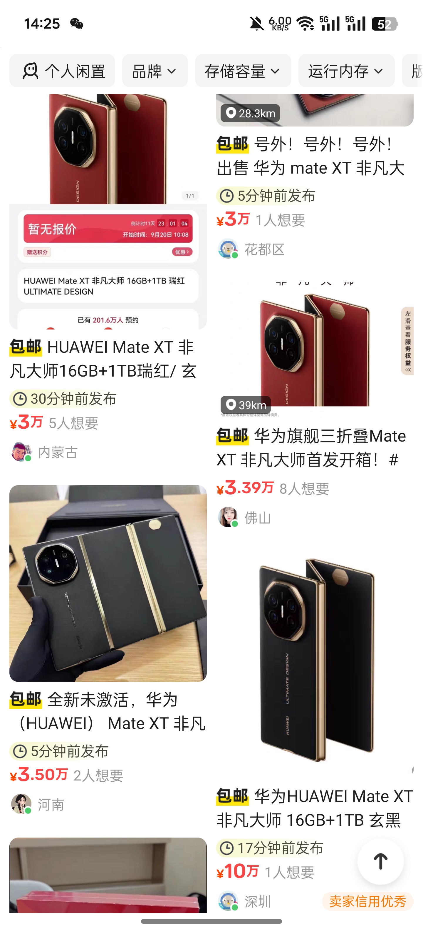 原价19999元起,二手平台竟被炒作到3万元左右起步,第一款三折叠手机华为Mate XT非凡大师成了新一代理财神器。