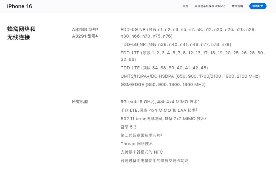 举个例子,iPhone16在官网上明确标注了支持23个5G频段和26个4G频段。