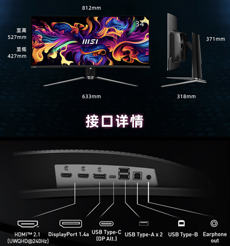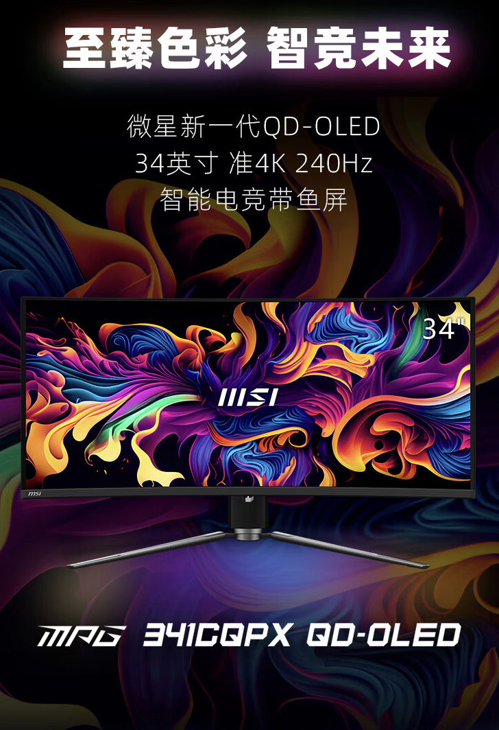 IT之家 9 月 14 日消息,微星“MPG 341CQPX”34 英寸带鱼屏曲面显示器现已在京东开售,这款显示器采用 1440P QD-OLED 面板,国行首发价 4999 元。
