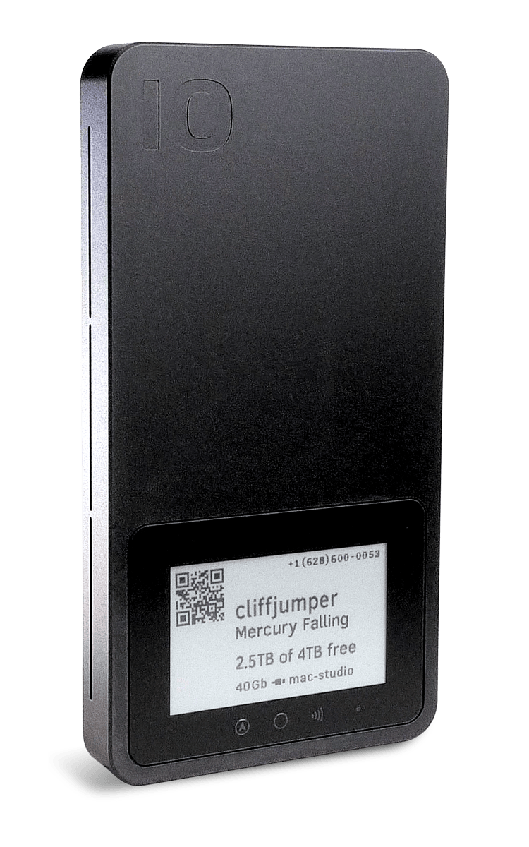 iodyne Pro Mini 在外观上的最大特色就是其配备的 2.1 英寸电子标签墨水屏,可替代凌乱的纸质贴纸对这块移动存储进行个性化标记,该墨水屏还可用于显示徽标、二维码、条形码等丰富内容。
