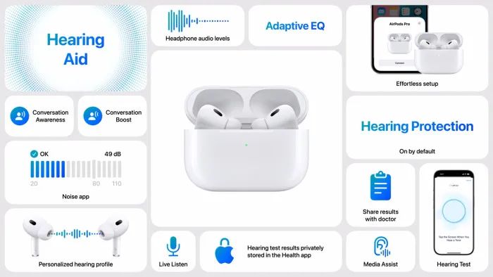 这次AirPods Pro 2好像并没有与现在风头正盛的AI智能有什么很多的联系,反而是不断在向“医疗设备”进军,不得不说库克在人文关怀上还是挺愿意下功夫的。