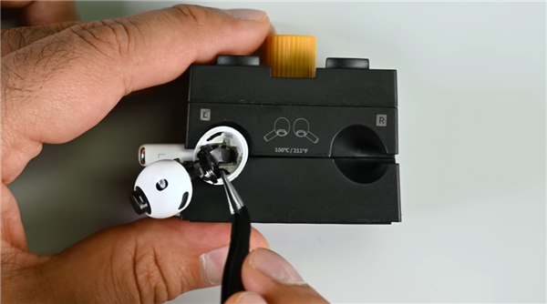 对耳机及充电盒进行电池维修时,必然会导致塑料外壳出现损伤,因为维修过程中需将外壳撬开。操作时需加热融化粘合剂,且每只耳机内部的柔性线缆均无便捷的断开方式。