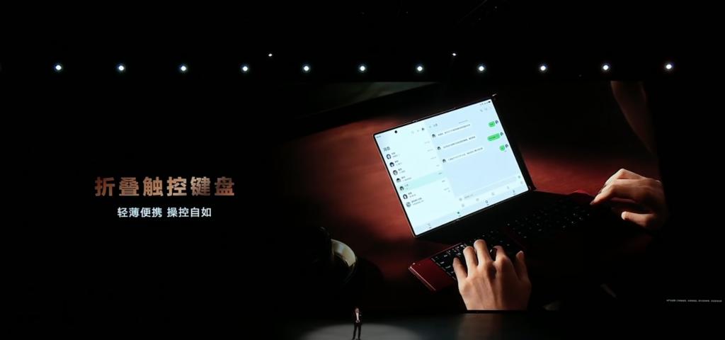 在演示视频中,这台手机被当作平板和手写笔联动,也以类似「Flip」的形式变身「双屏翻译器」,或者用三分之一屏幕作为键盘,成为一台「小笔记本」。