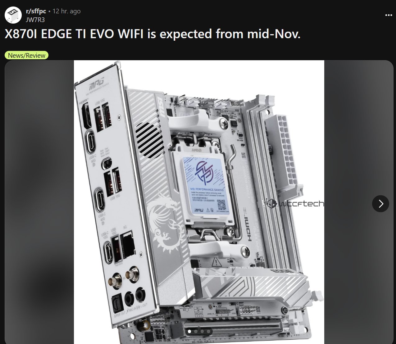 与此同时,为支持 Zen 6 处理器,部分新特性已出现在即将发布的 MSI MPG X870I Edge TI Evo WiFi 主板上,预计将于今年 11 月左右在中国内地上市。