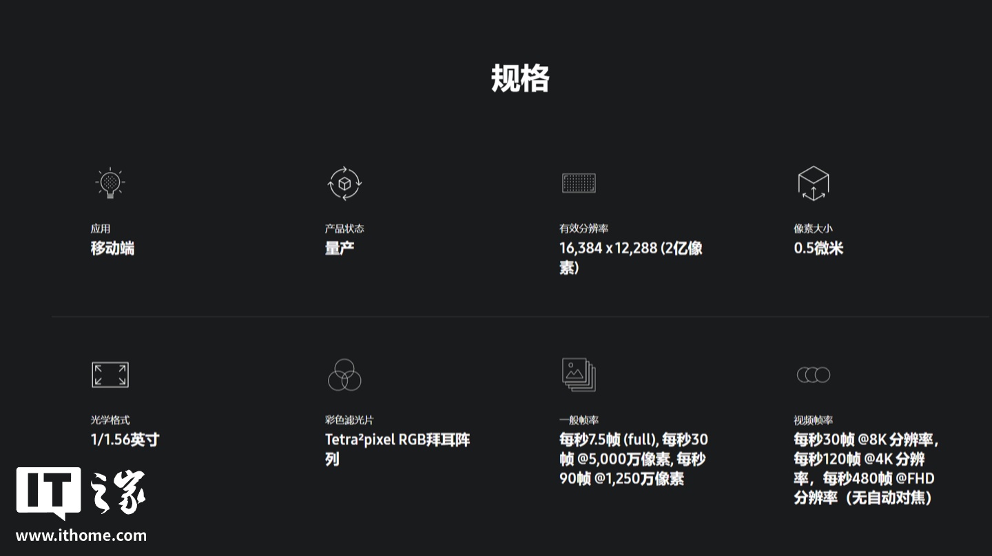 视频方面,该传感器支持录制 8K 30fps、4K 120fps 以及全高清 240fps 的视频,并能输出多种位深的 RAW 格式文件。