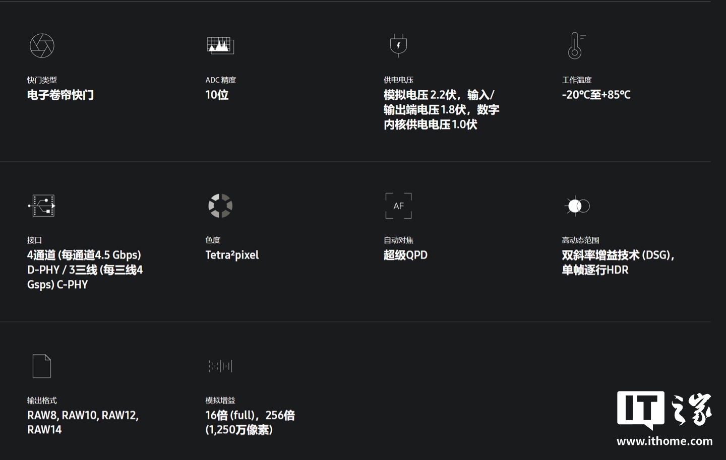 该传感器还改进 DTI 中心切割(DCC)技术,优化了像素间的隔离效果,在增强自动对焦精度的同时,也进一步降低了图像噪声。三星官方数据显示,这些改进使转换增益提升了 150%,随机噪声则降低了 3% 至 40%,尤其能显著改善低光环境下的拍摄效果。