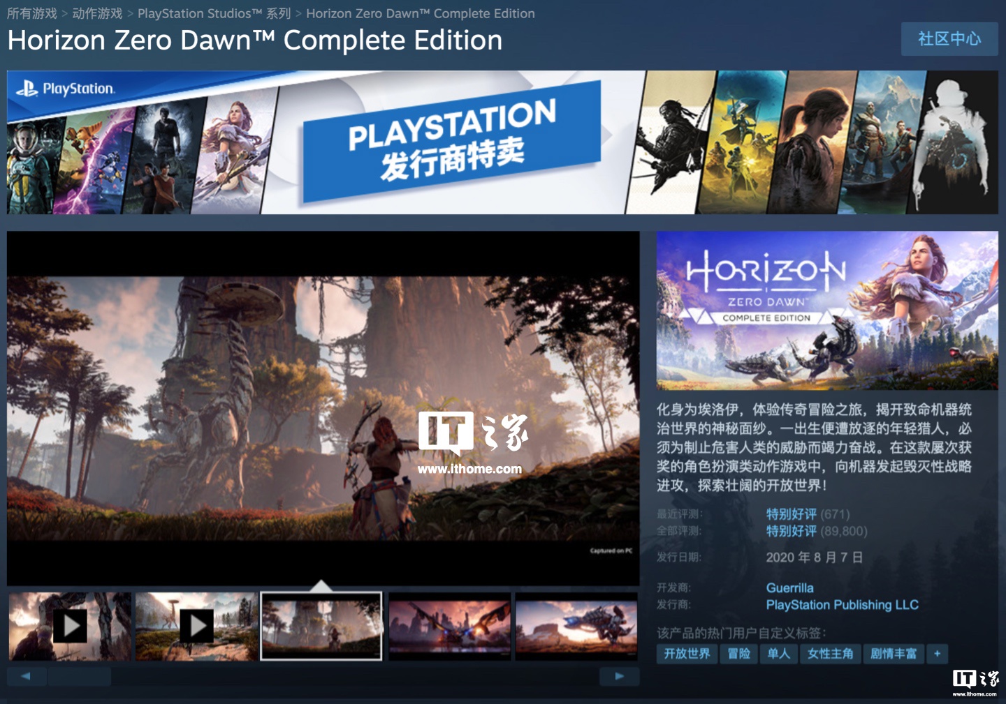 IT之家 9 月 16 日消息,索尼旗下第一方工作室 Guerrilla Games 第三人称动作角色扮演游戏《地平线:零之曙光完整版(Horizon Zero Dawn Complete Edition)》现已在 Steam 平台迎来史低优惠,本作原价 346 元,2.5 折后到手价 86.25 元,IT之家附游戏商品页如下(点此访问)。