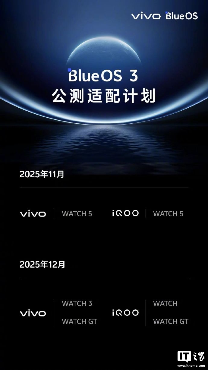 vivo 蓝河操作系统 3 将于 11 月开启手表端公测,首批支持 vivo / iQOO WATCH 5