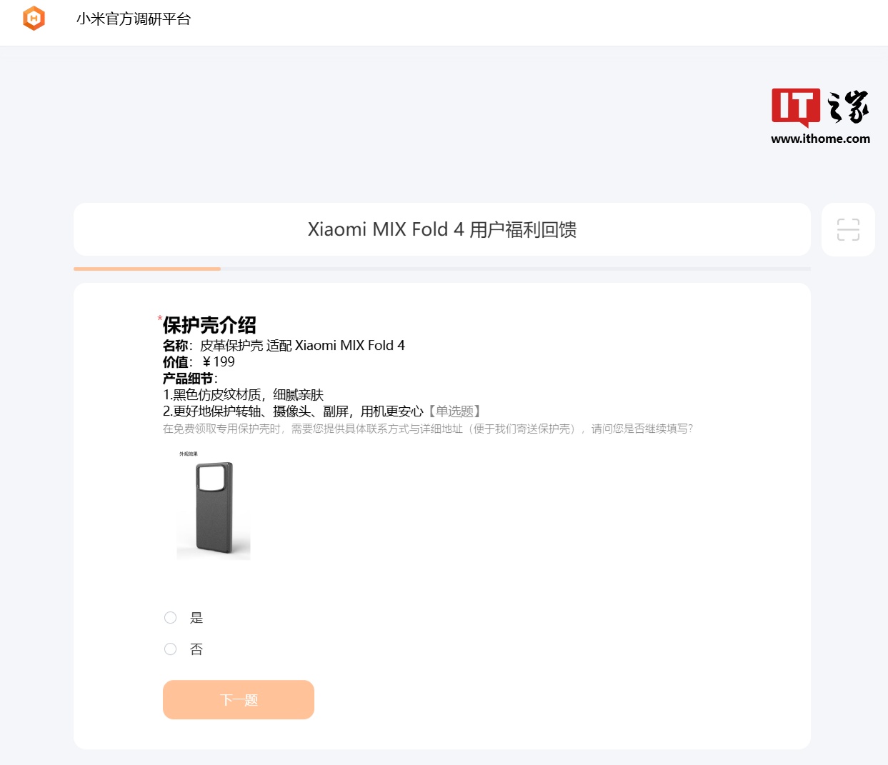 IT之家 9 月 16 日消息,小米近日开启“中秋国庆”用户回馈活动,小米 MIX Fold4 手机用户可免费领取皮质保护壳。