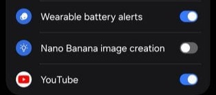 最受关注的新功能是一个名为“Nano Banana image creation”的开关选项。目前,该功能在三星设备上的具体作用尚不明确,外界普遍猜测它是一项全新的 AI 功能,可能用于创建 AI 壁纸或通过人工智能生成特殊图像。