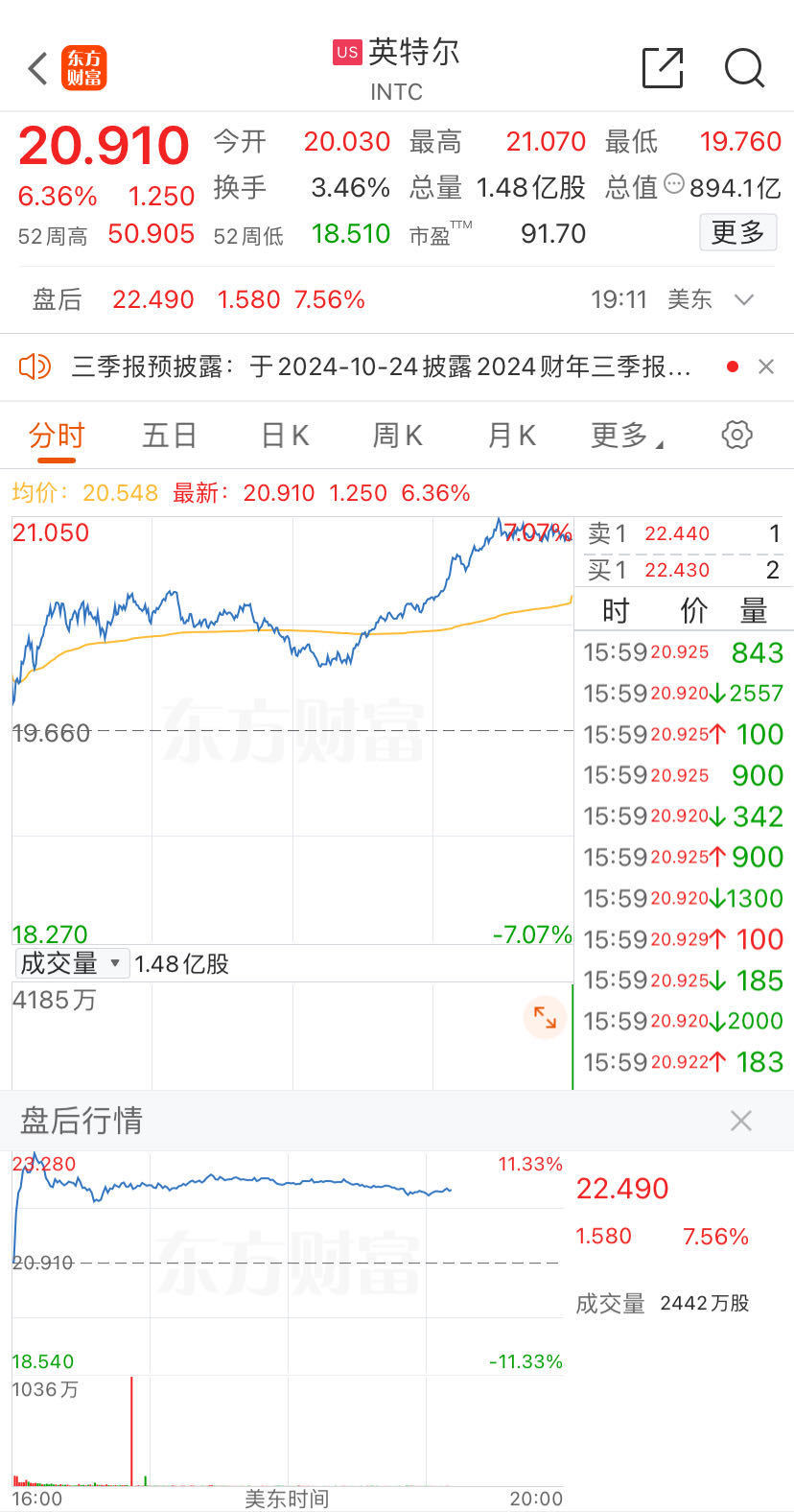 英特尔公司周一涨超6%,盘后股价一度上涨11%,该公司表示,计划将其晶圆代工业务转型为拥有独立董事会、且可能筹集外部资金的独立部门。