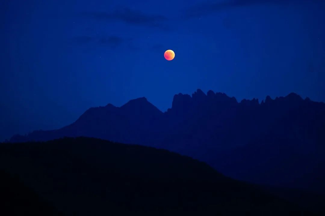不过要注意的是,当月亮完全升起后,亮度会比较高,因而难以保证地景和月亮的均衡曝光,所以如果不是单纯拍摄月亮的话,更建议大家在月亮升起阶段,也就是 18 时-19 时(当地时间)进行拍摄。