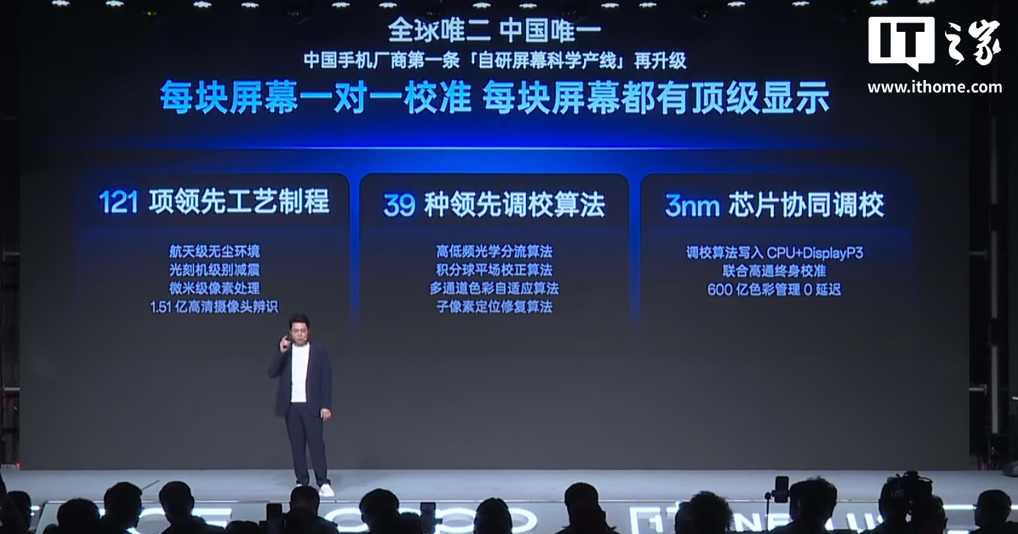 IT之家从发布会获悉,该屏幕宣称实现 8 大技术突破,刷新 9 大世界纪录,配备 Display P3 独家自研屏幕芯片、全新 X3 发光材料等,屏幕四边压缩至 1.15mm。