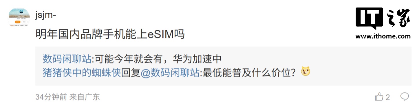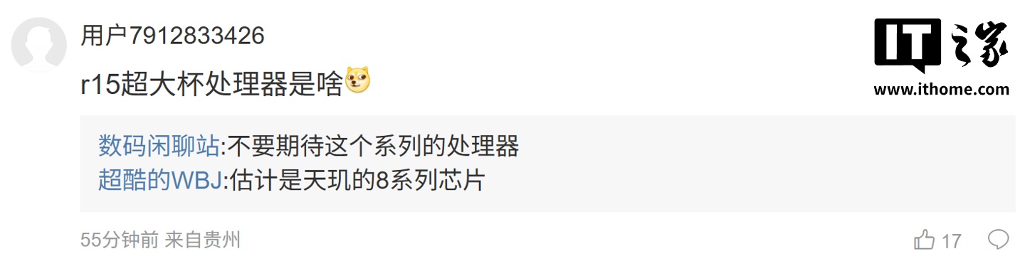 后续有用户在评论区询问:“r15 超大杯处理器是啥 ”,博主回复道:“不要期待这个系列的处理器”;另一名用户则询问道:“明年国内品牌手机能上 eSIM 吗”,博主则表示:“可能今年就会有,华为加速中”。