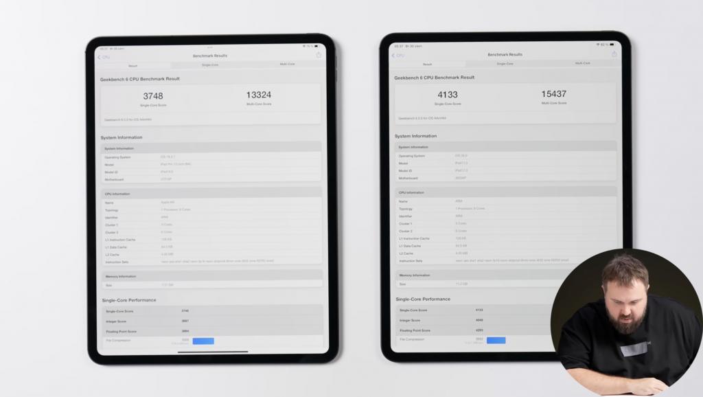 偷跑的 iPad Pro 为 256GB 版本,Benchmark 显示配备运行内存 12GB,作为对比,M4 iPad Pro 的 256GB 和 512GB 配备了 8GB 运存。