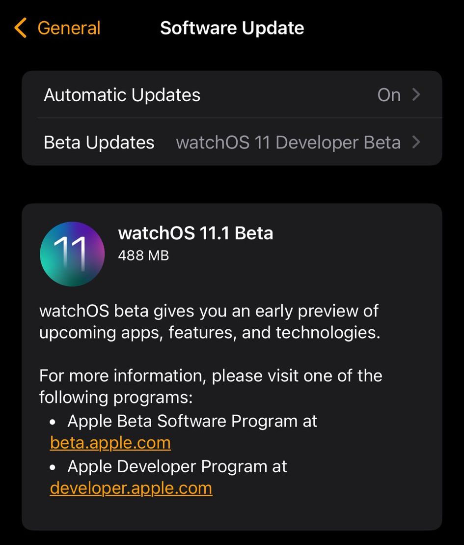 IT之家 9 月 18 日消息,苹果今日向 Apple Watch 用户推送了 watchOS 11.1 开发者预览版 Beta 更新(内部版本号:22R5545g),本次更新距离上次发布 Beta / RC 间隔 8 天。