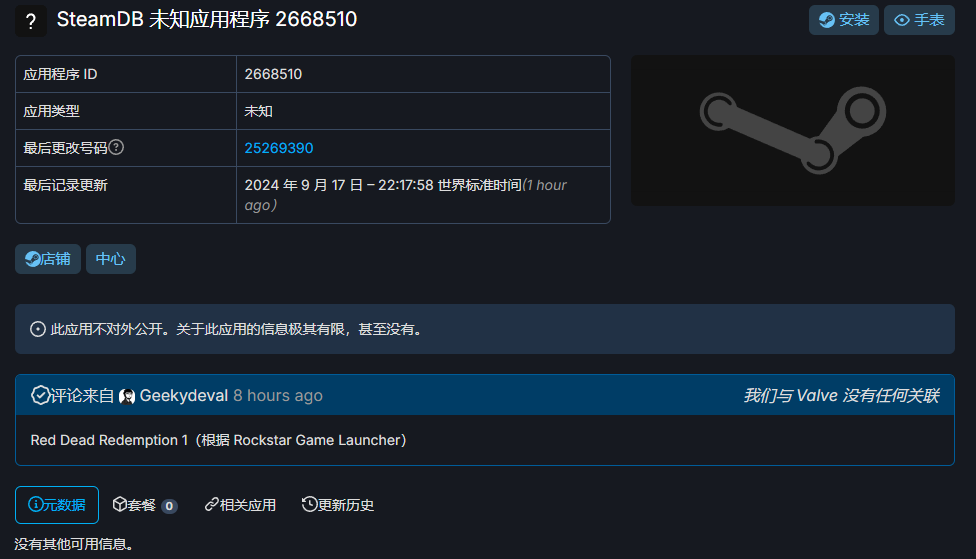 除此之外, @TezFunz2 今天发现 R 星启动器和《GTA 5》更新后出现了一条 Red Dead Redemption 1,指向了暂未上线 Steam 但已经可以在平台后台查看的《荒野大镖客:救赎》,表明这款游戏正准备上架 Steam。