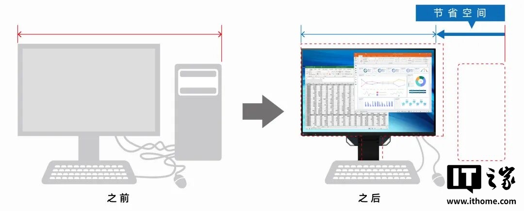新品还兼容 VESA 标准的支架,背板可挂载瘦客户机或迷你主机,直接释放终端设备所占桌面空间。即便搭载外接设备,仍能保持显示器支架全向调节自由度。