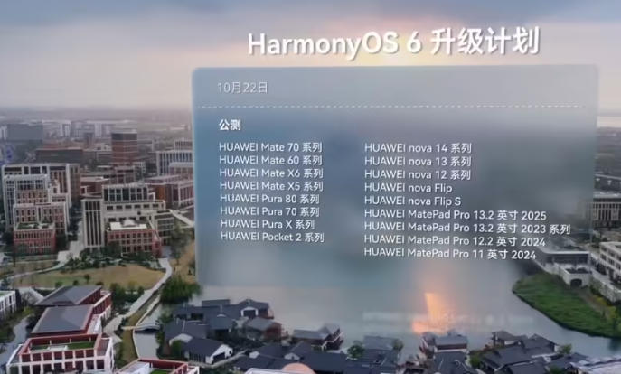 华为鸿蒙6的升级计划已正式公布。10月22日起,首批公测将覆盖HUAWEI Mate 70/60、Pura 80/70、nova 12/13/14等系列手机,以及MatePad Pro平板。11月至12月,升级范围将进一步扩大,涵盖畅享系列手机、MatePad Air/Mini系列平板、WATCH FIT4手表及智慧屏、智能音箱、路由器等全场景设备。