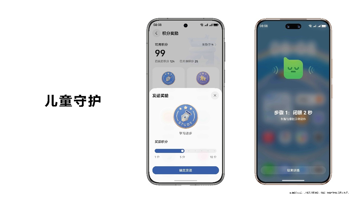 针对孩子使用设备的场景,当孩子长时间使用设备导致用眼过度、眼部疲劳时,远程守护功能会根据使用方式及习惯,推送护眼提醒,及时干预以保护孩子的视力健康。升级后的远程守护功能还进一步优化了体验:家长不仅能实时了解孩子的设备使用动态,还新增了积分奖励机制 —— 家长可根据孩子的进步发放积分,孩子则能用积分兑换更多设备使用时长,用正向激励平衡使用需求,并培养孩子的时间管理意识。